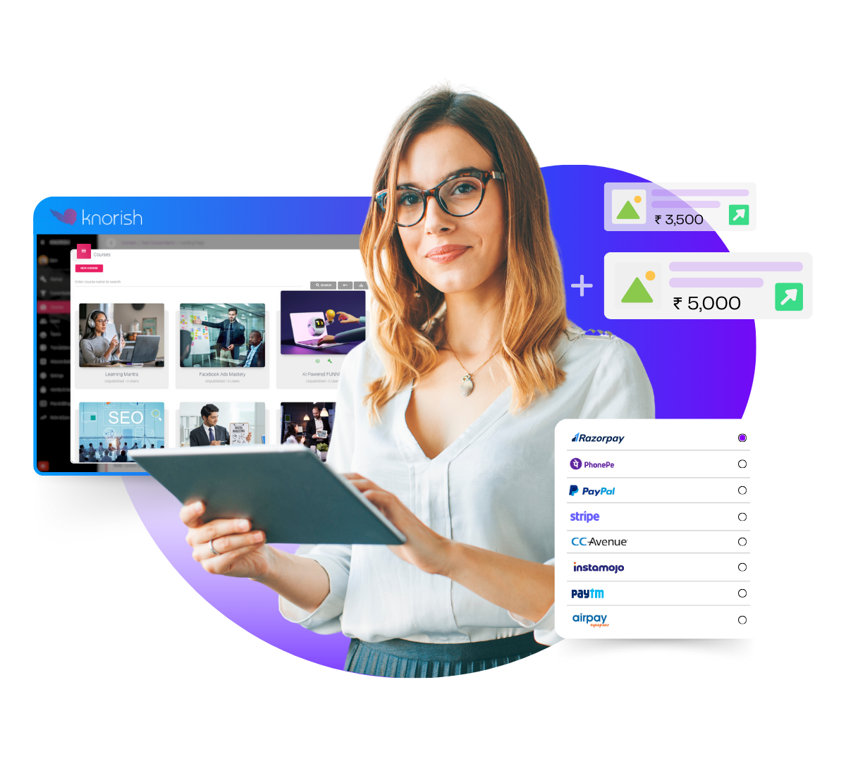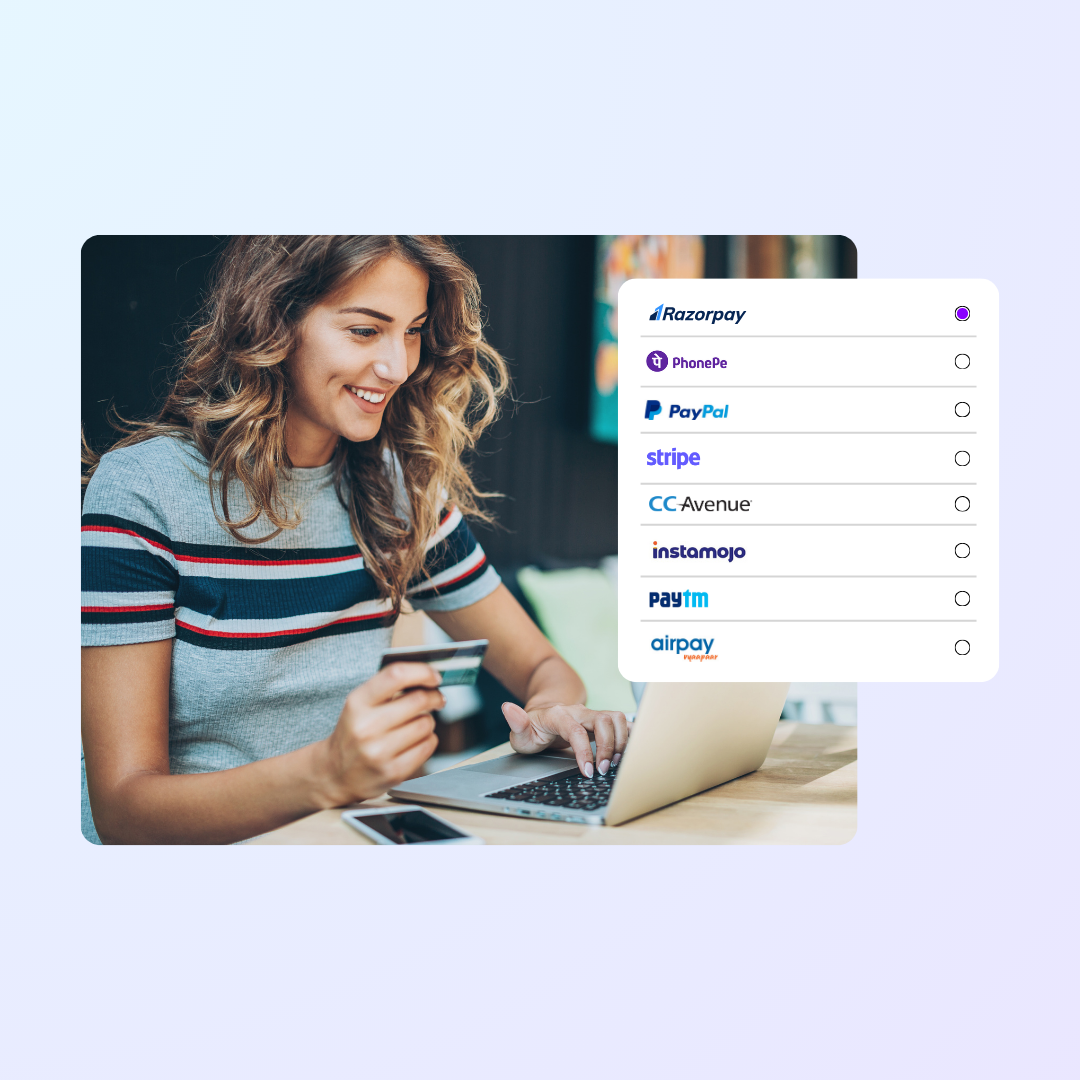 Knorish supports multiple payment options, including recurring payments. Simply configure your preferred payment gateway, and set up the requisite billing options for seamless transactions.