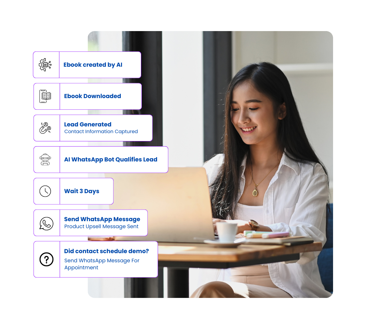You can create welcome messages, upsell offers, event reminders, and more, all tailored to your customer's journey.